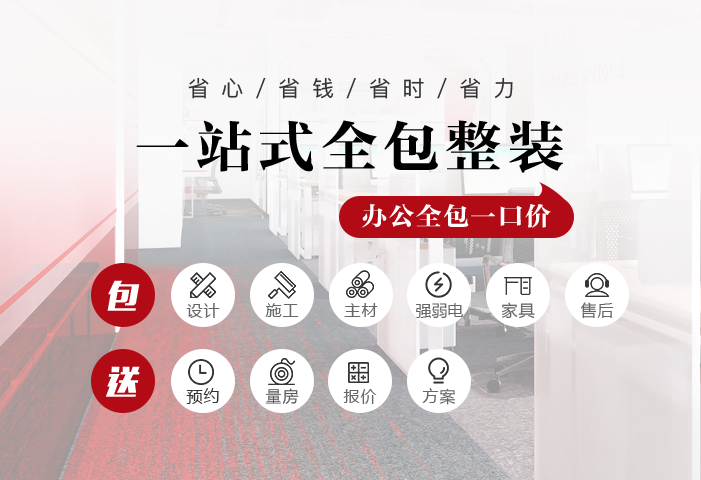 100+专业高级设计师,100个资深施工班组,紧密写作,成就办公室装修典范